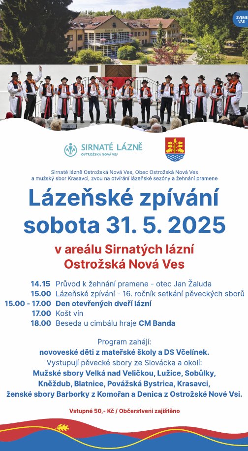Otvírání lázeňské sezóny a žehnání pramene v Ostrožské Nové Vsi již v sobotu 31. května