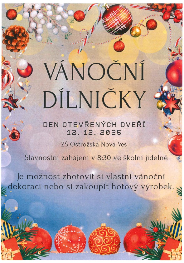 Základní škola Ostrožská Nová Ves Vás zve na Den otevřených dveří spojený s kouzelnými vánočními dílničkami, které proběhnou 12. 12. 2025 přímo v prostorách školy.