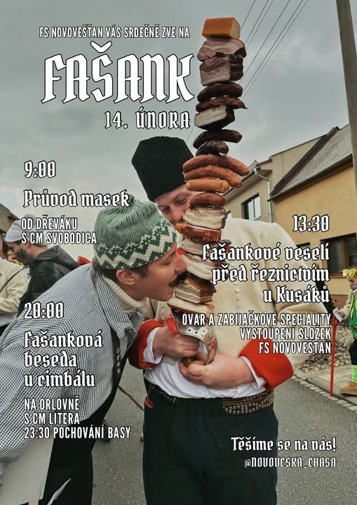 FS Novovešťan vás zve na den plný hudby, masek, vůní zabijačky a pořádného veselí!